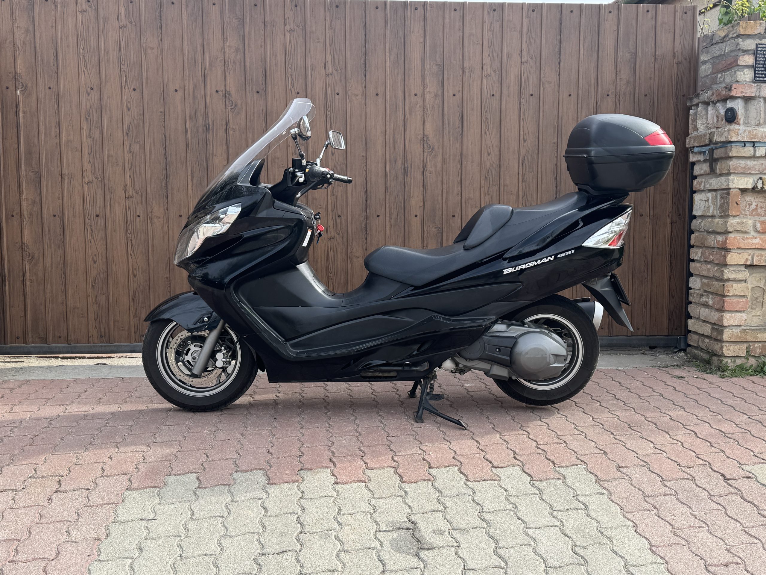 Bőrülés – dupla tárcsafék elöl – fedélzeti computer – fordulatszámmérő – hátsó doboz – immobiliser – információs kijelző – középsztender – lábtartó – önindító – plexi – tárcsafék elöl – tárcsafék hátul. Rendszeresen karbantartott – szervizkönyv. Eladó szép állapotú, magyarországi első forgalomba helyezésű, végig vezetett szervizkönyves AN 400 K7 modell. Frissen szervizelve, olaj, szűrők cserélve, friss hajtásszerviz – új Malossi szíj, újszerű gyári kuplung, új fékek, jó akksi, jó gumik. Kérjük, tekintse meg többi motorunkat is kínálatunkban. Kistarcsa, Burgmanbázis.