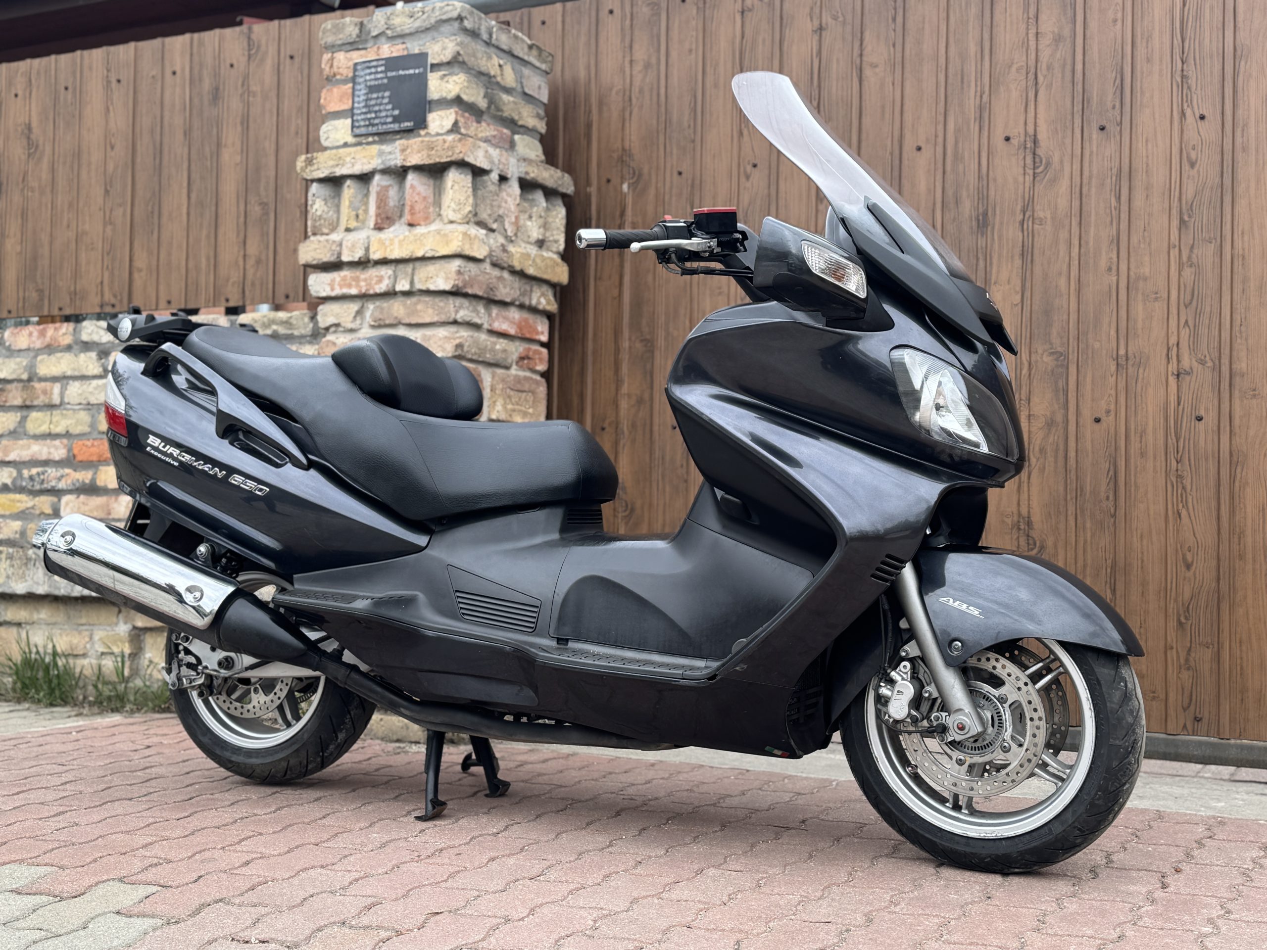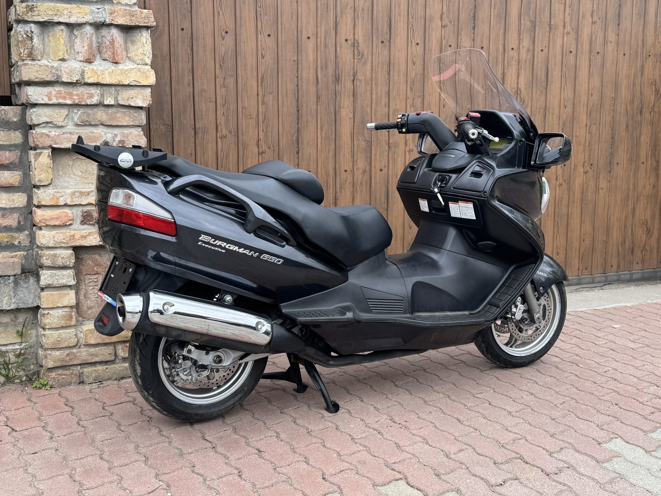 ABS (blokkolásgátló) – bőrülés – dupla tárcsafék elöl – fedélzeti computer – fordulatszámmérő – immobiliser – információs kijelző – középsztender – lábtartó – motoros szélvédő – önindító – plexi – tárcsafék elöl – tárcsafék hátul. Eladó szép állapotú AN 650 K6 EXE ABS modell. Leszervizelve, átnézve, szezonra felkészítve. Váltószervizen frissen átesett, új műanyag fogaskeréksor, új csapágyak, szimmeringek, felújított primer. Újszerű gumik, új Yuasa akksi, új fékbetétek, új hátsó féktárcsa, termosztát csere, összes folyadék, összes szűrő cserélve, új ülésteleszkóp. Kérjük, tekintse meg többi motorunkat is kínálatunkban. Kistarcsa, Burgmanbázis.