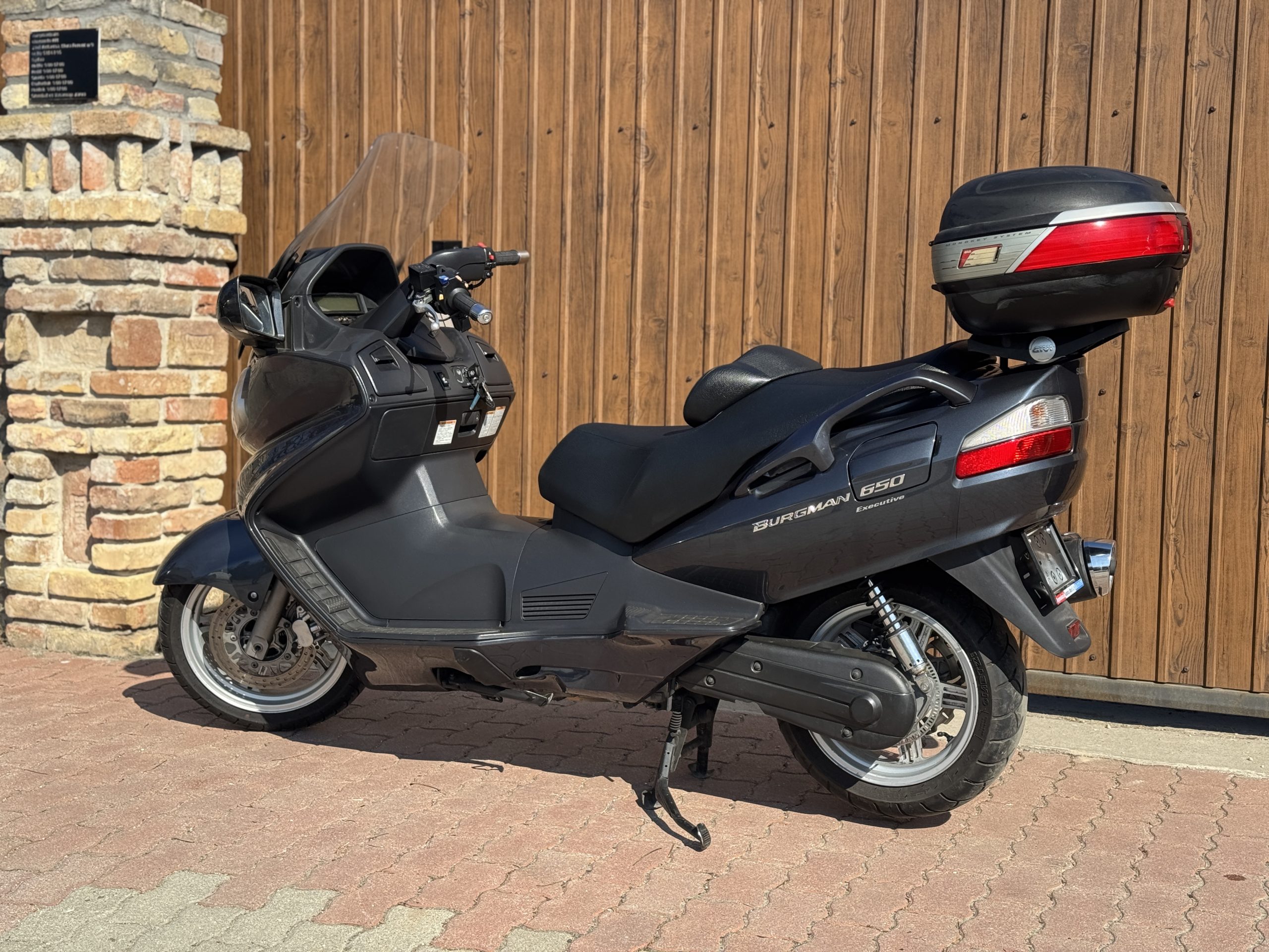 ABS (blokkolásgátló) – bőrülés – dupla tárcsafék elöl – fedélzeti computer – fordulatszámmérő – fűthető ülés – hátsó doboz – immobiliser – információs kijelző – középsztender – lábtartó – markolat fűtés – motoros szélvédő – önindító – plexi – tárcsafék elöl – tárcsafék hátul. Szép állapotú AN 650 L3 EXE ABS modell. Frissen szervizelve – a váltóban csapágyak, szimmeringek, műanyag fogaskeréksor cserélve, összes folyadék, szűrő cserélve, jó gumik, jó akksi, dobozzal. Szezonra felkészítve. Kérjük, tekintse meg többi motorunkat is kínálatunkban. Kistarcsa, Burgmanbázis.